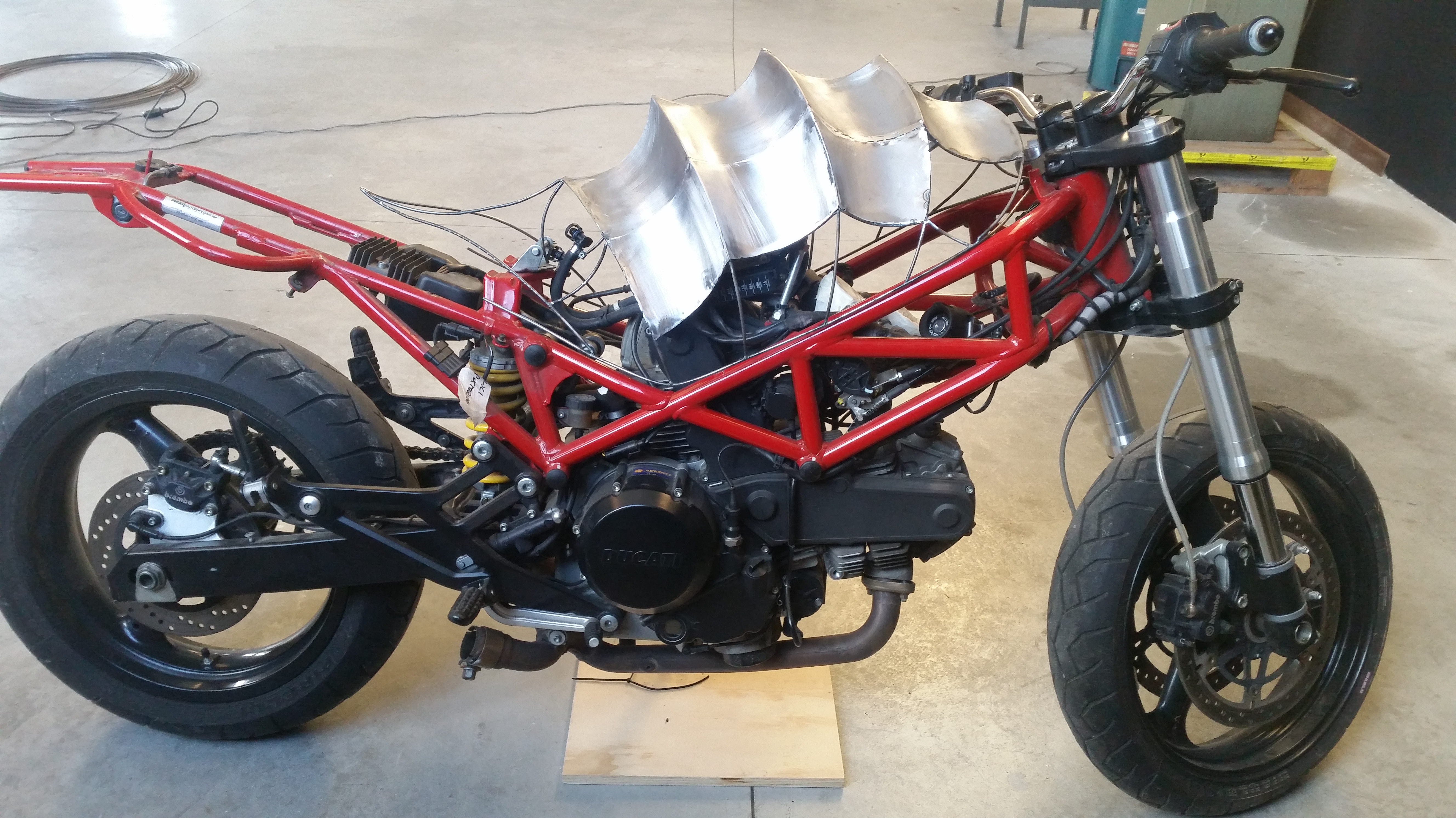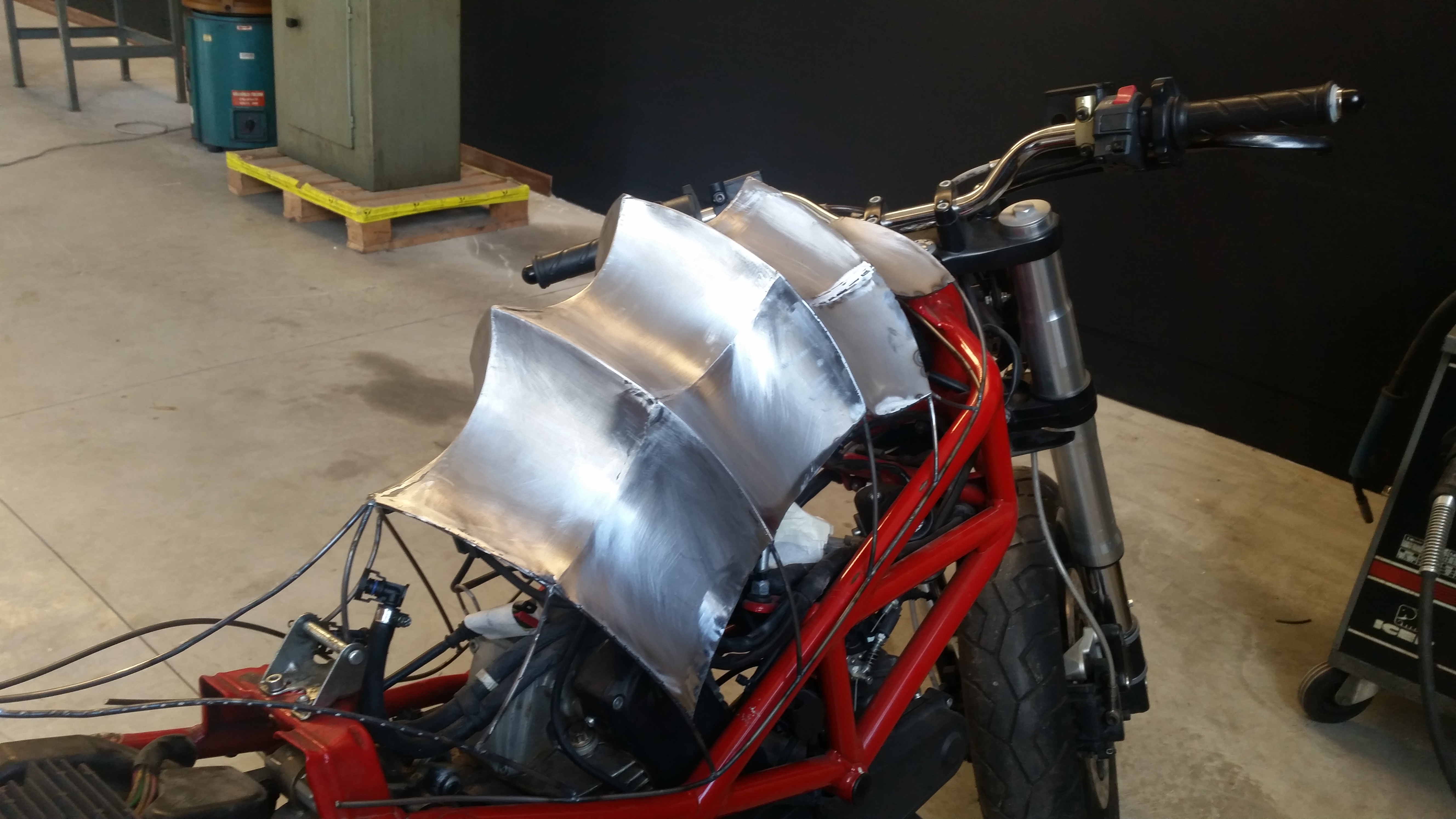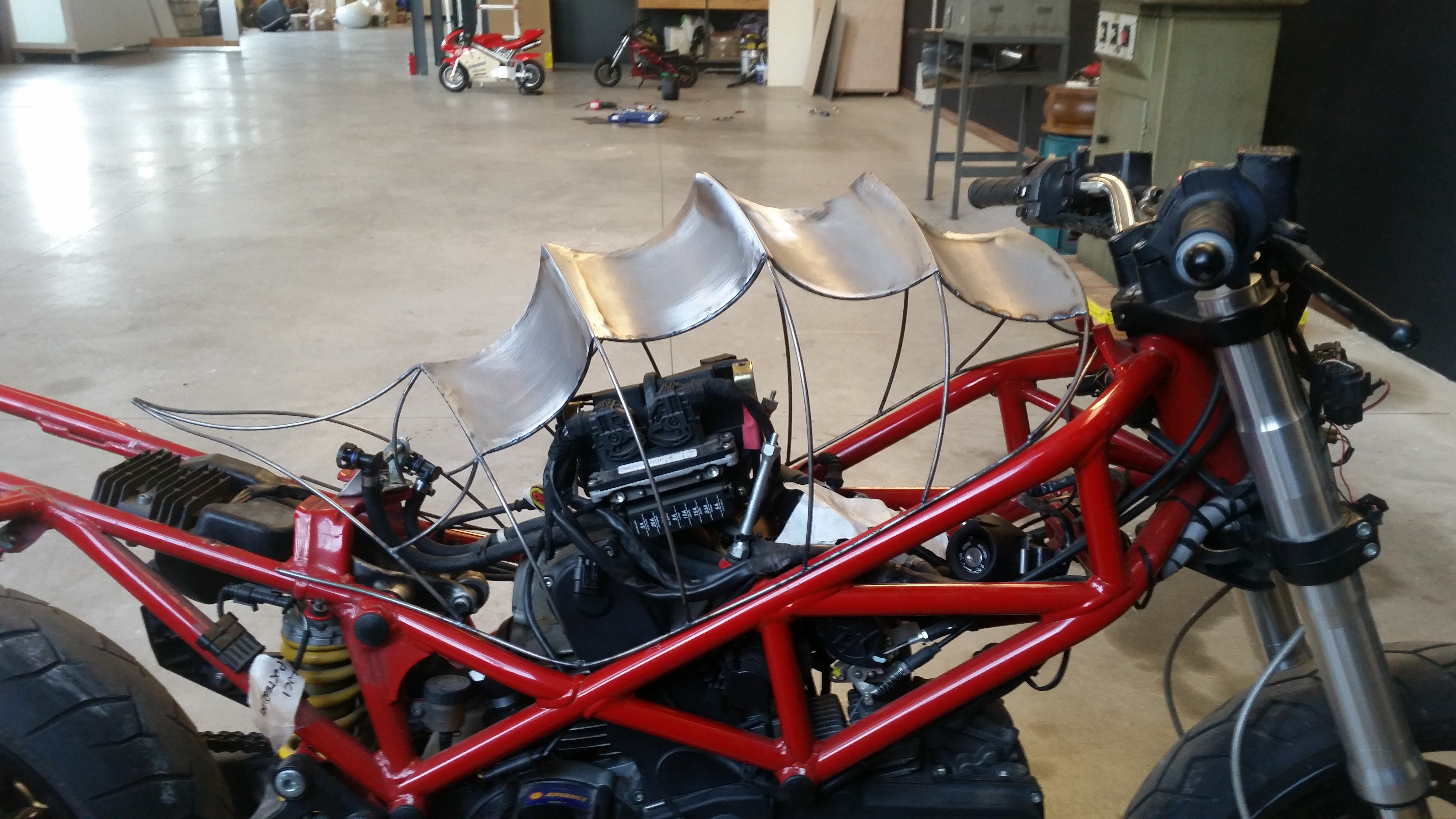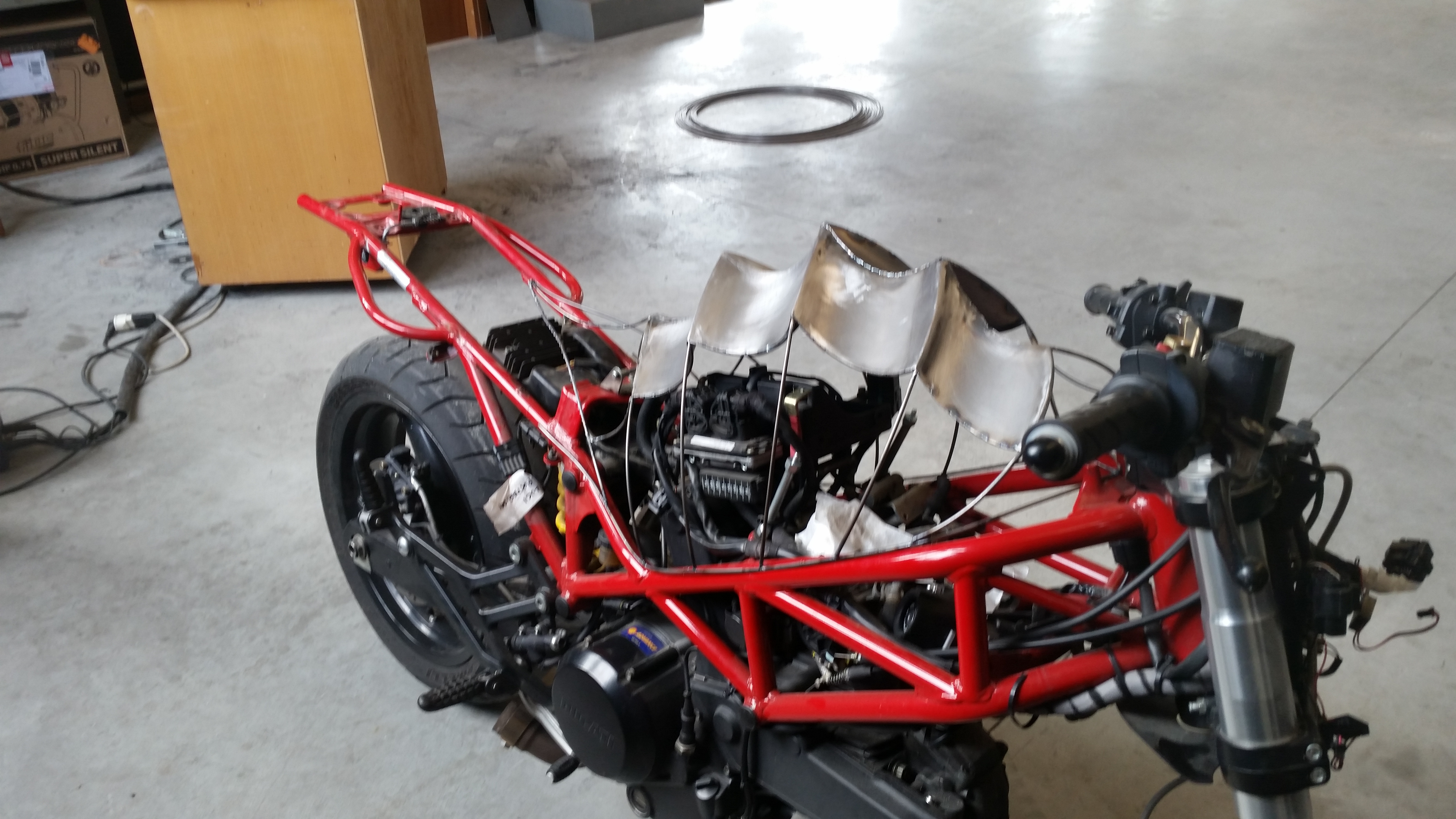 Con la stessa tecnica iniziai a costruire anche il parafango anteriore e il faro, ma il primo evento a cui avrei partecipato si stava avvicinando. A Brescia stava iniziando Rombo di tuono e avendo deciso ti portare un’altra moto in esposizione, tra mille critiche decisi che, nonostante Apophis non fosse nemmeno a metà dell’opera, dovevo portare anche lei… decisi di lasciarla sul fondo dello stand avvolta da una rete metallica un po’ per “nasconderla”. Chi avrebbe mai detto che avrei fatto la scelta più giusta che potevo fare?