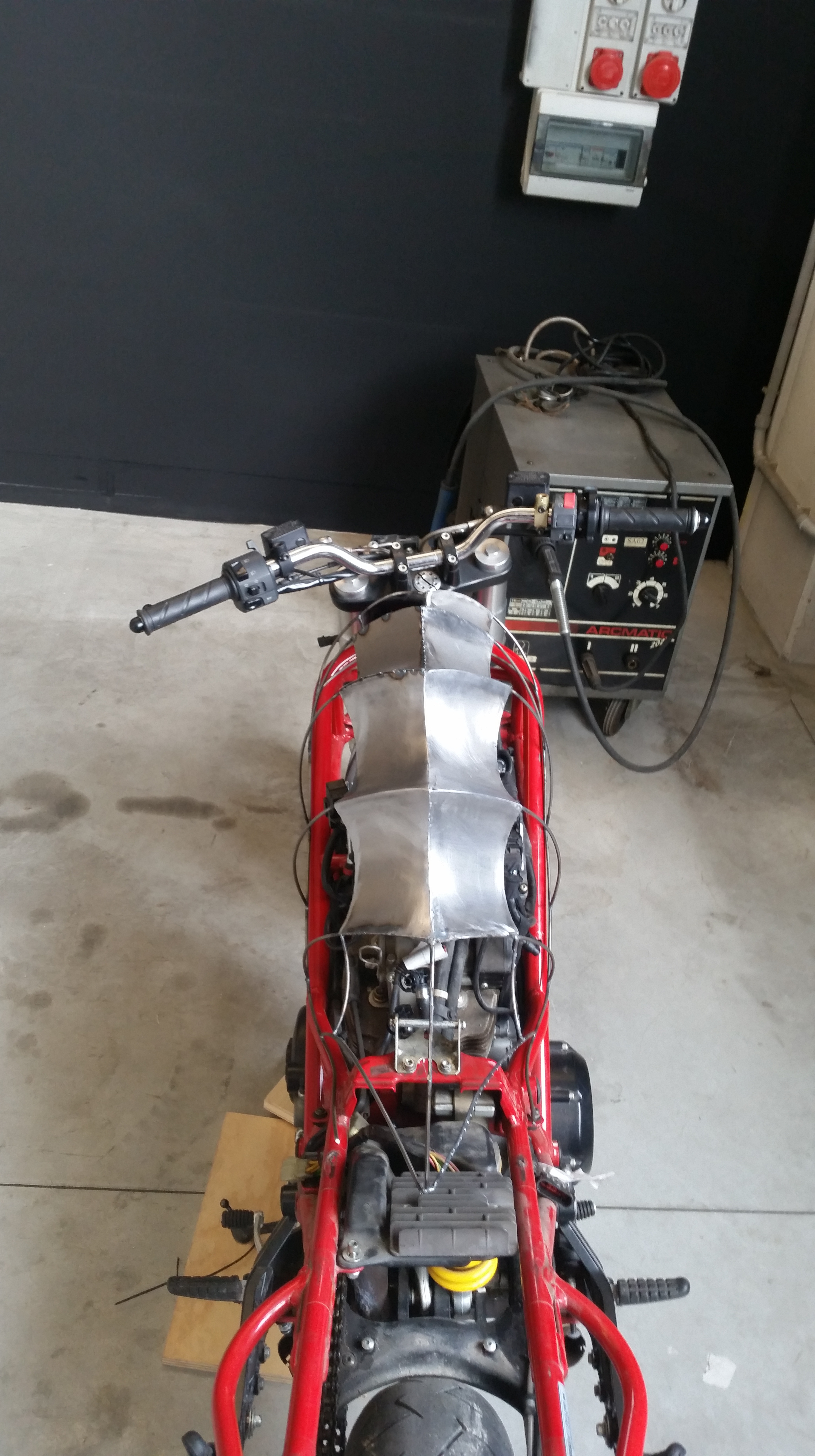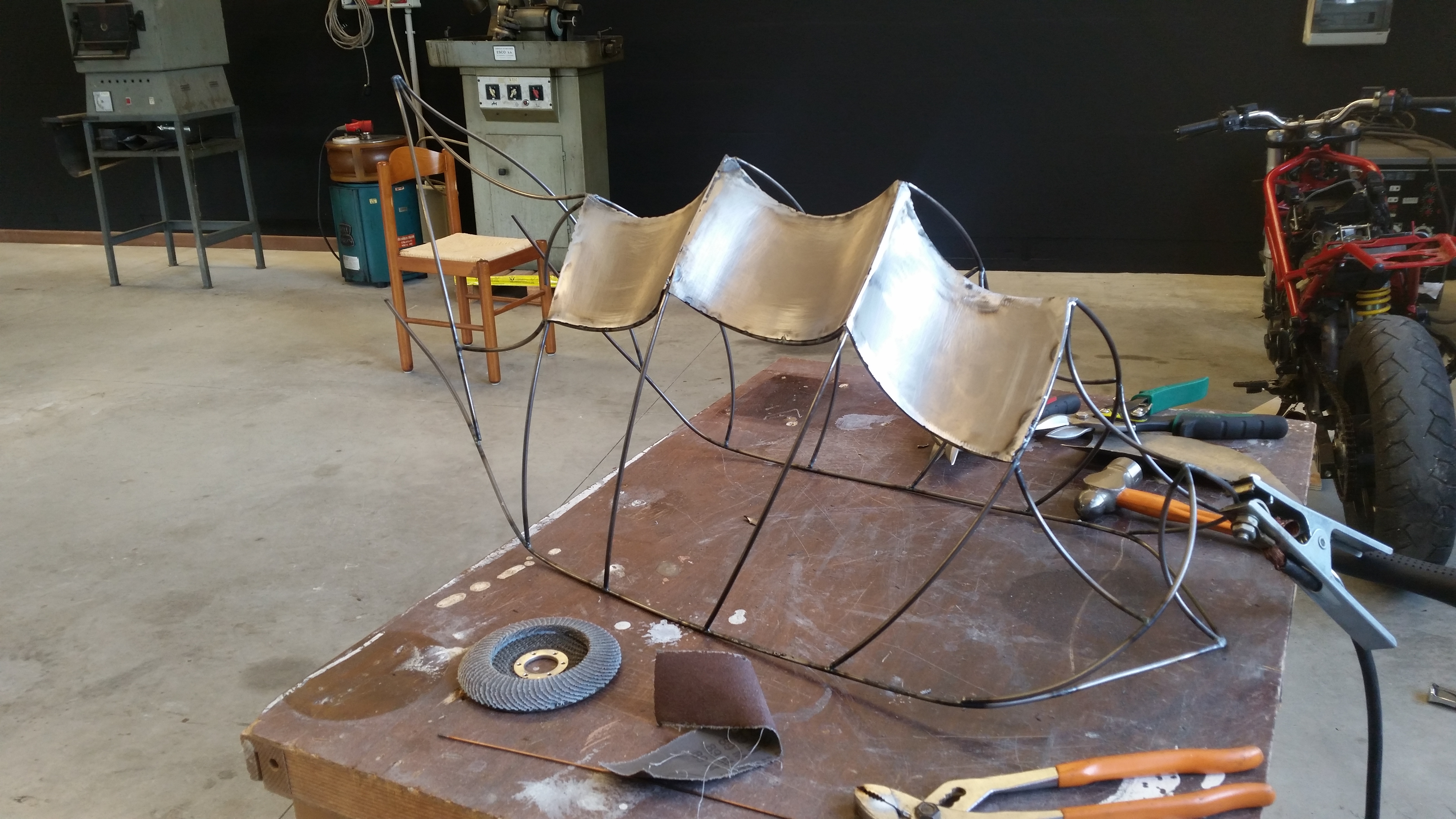 Subito dopo iniziai a dare una forma primitiva al monoscocca con un semplice tondino di acciaio da 4 mm, saldandolo insieme, calcolando le proporzioni e creando la linea base.