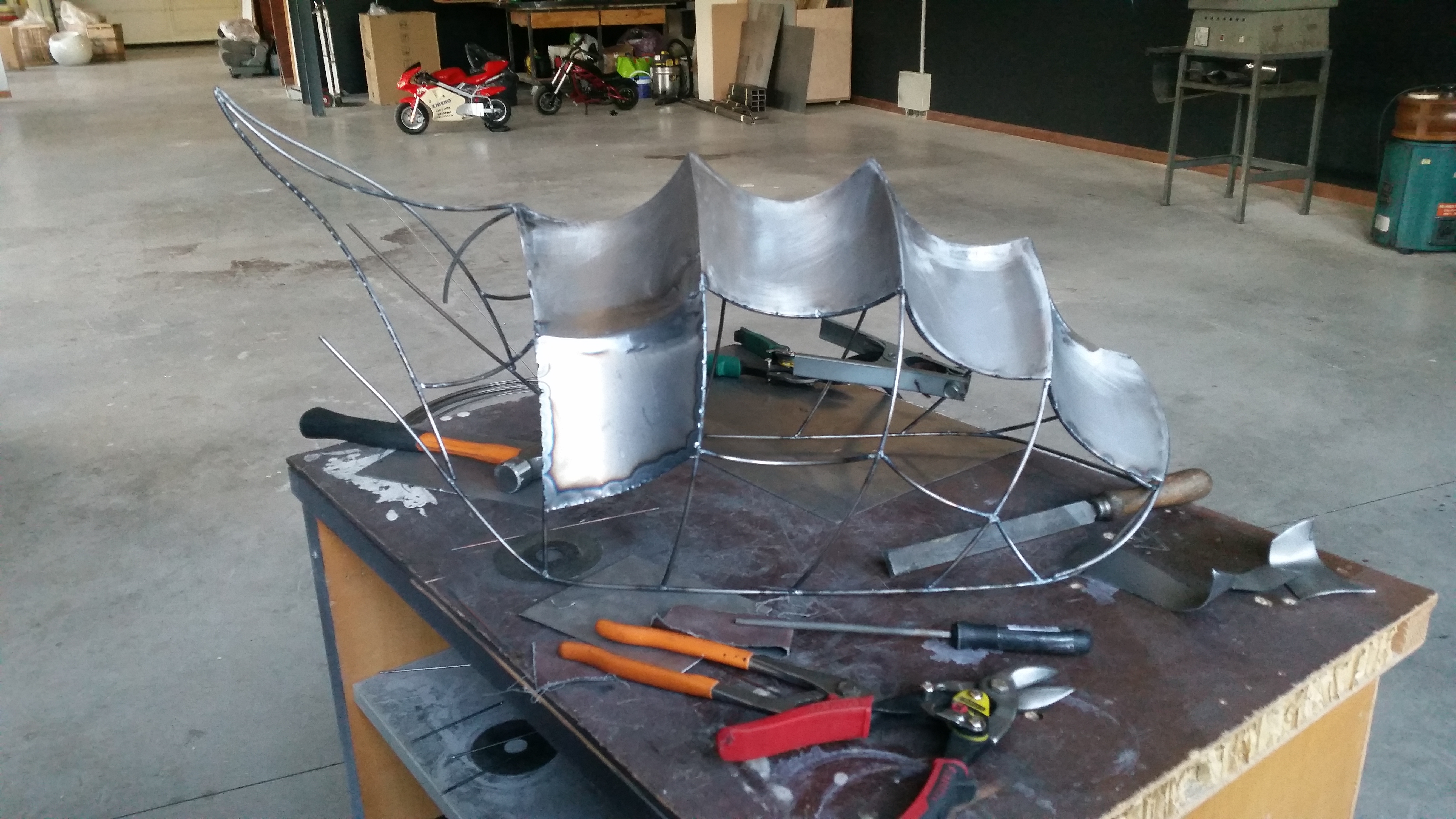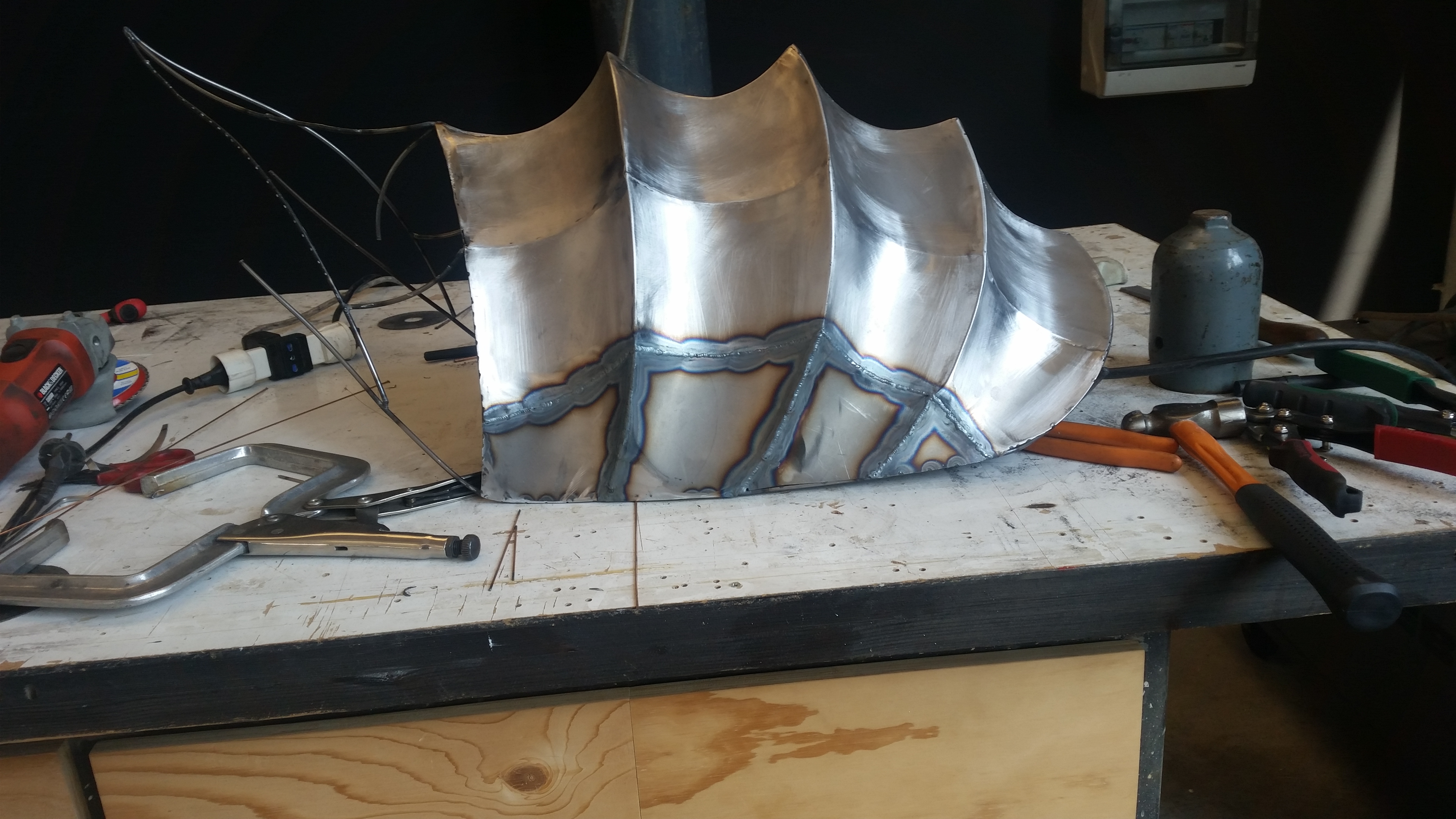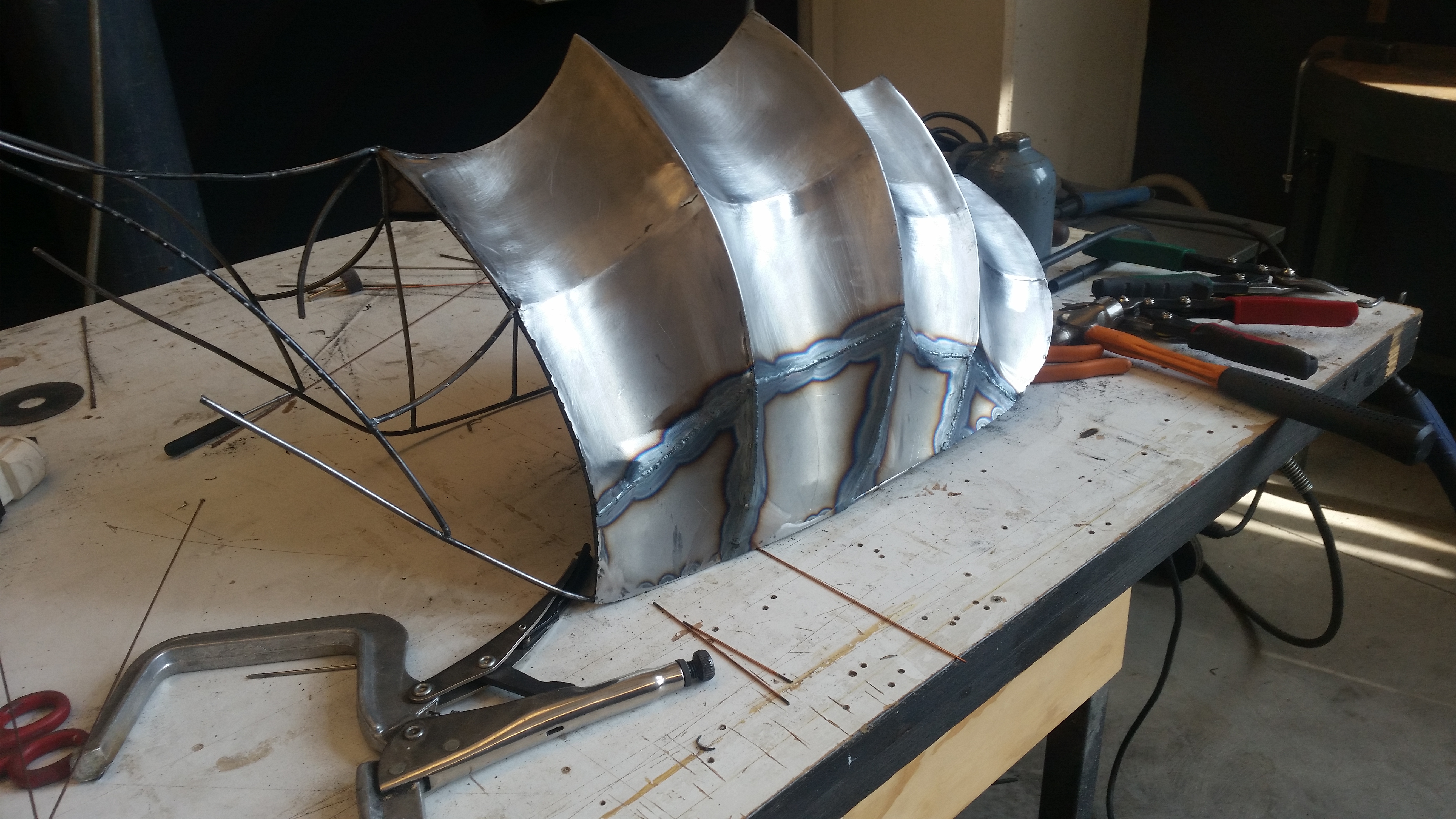 Right after I began shaping the shell into a primordial outline by means of a 4 mm rod steel, carefully calculating proportions, soldering all together and thus creating a baseline.