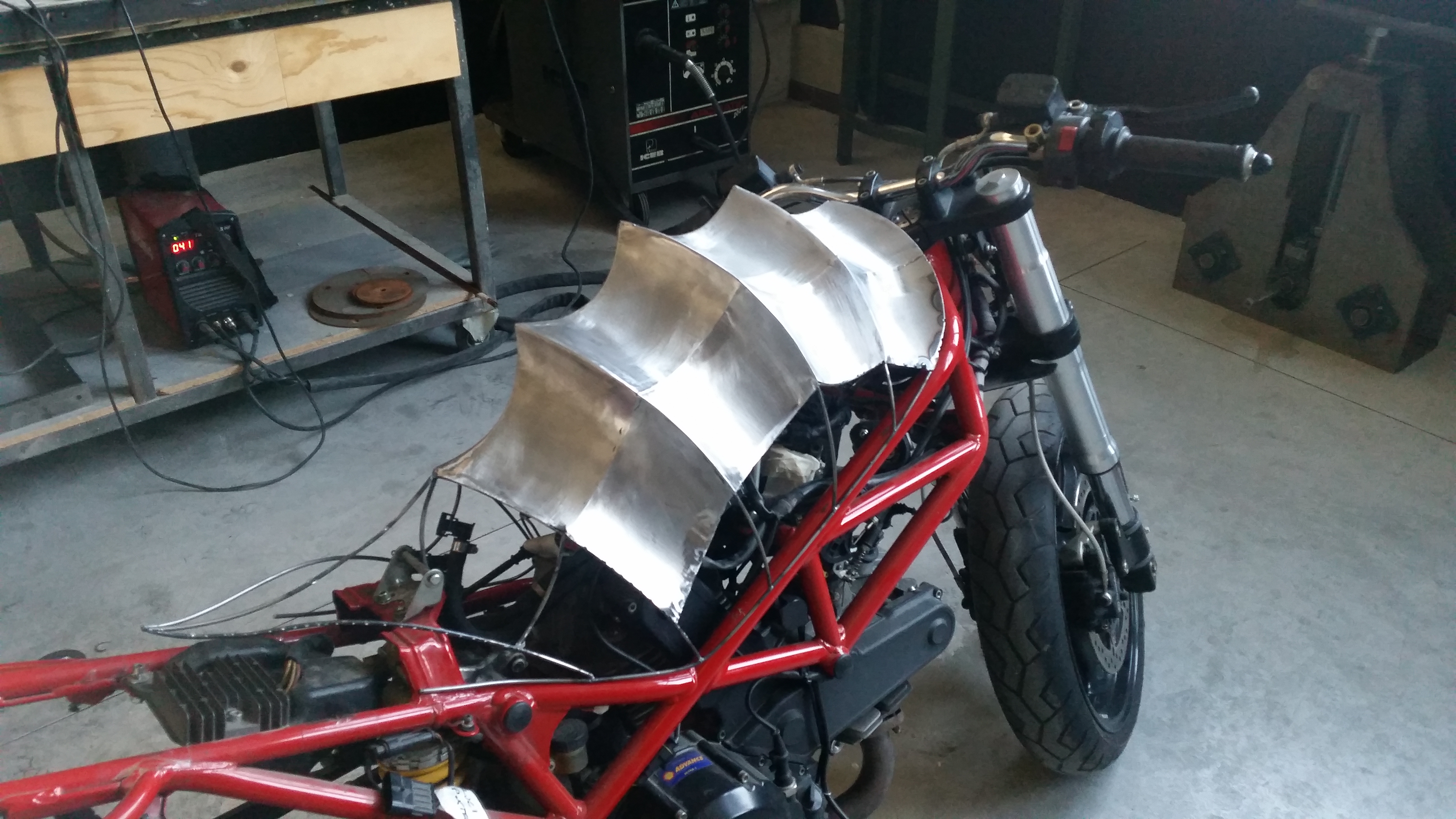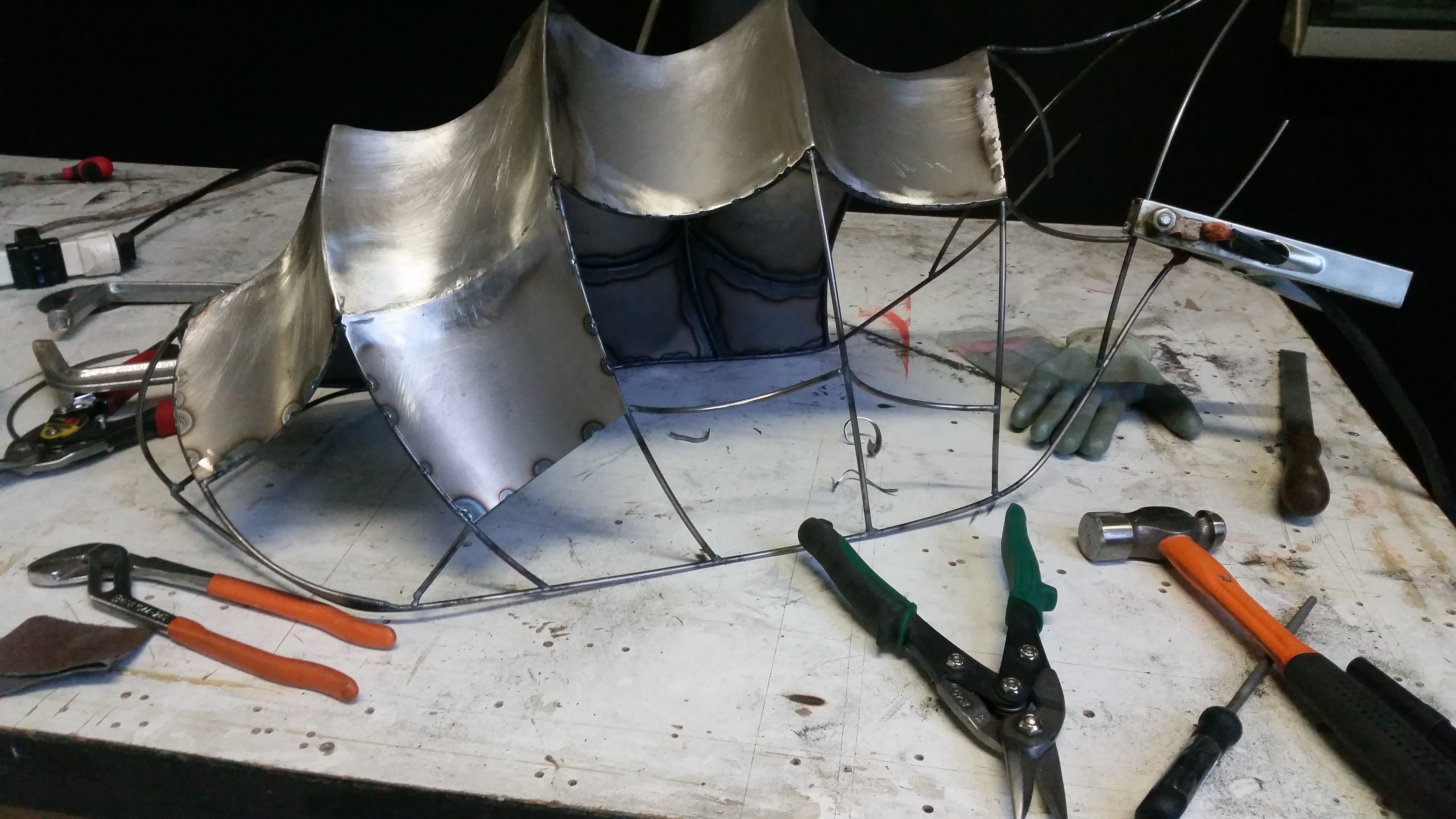 A questo punto giunse il momento di iniziare ad applicare la lamiera, lavorandola a mano con strumenti come ruota inglese, maglio pneumatico ed una quantità infinita di martelli…