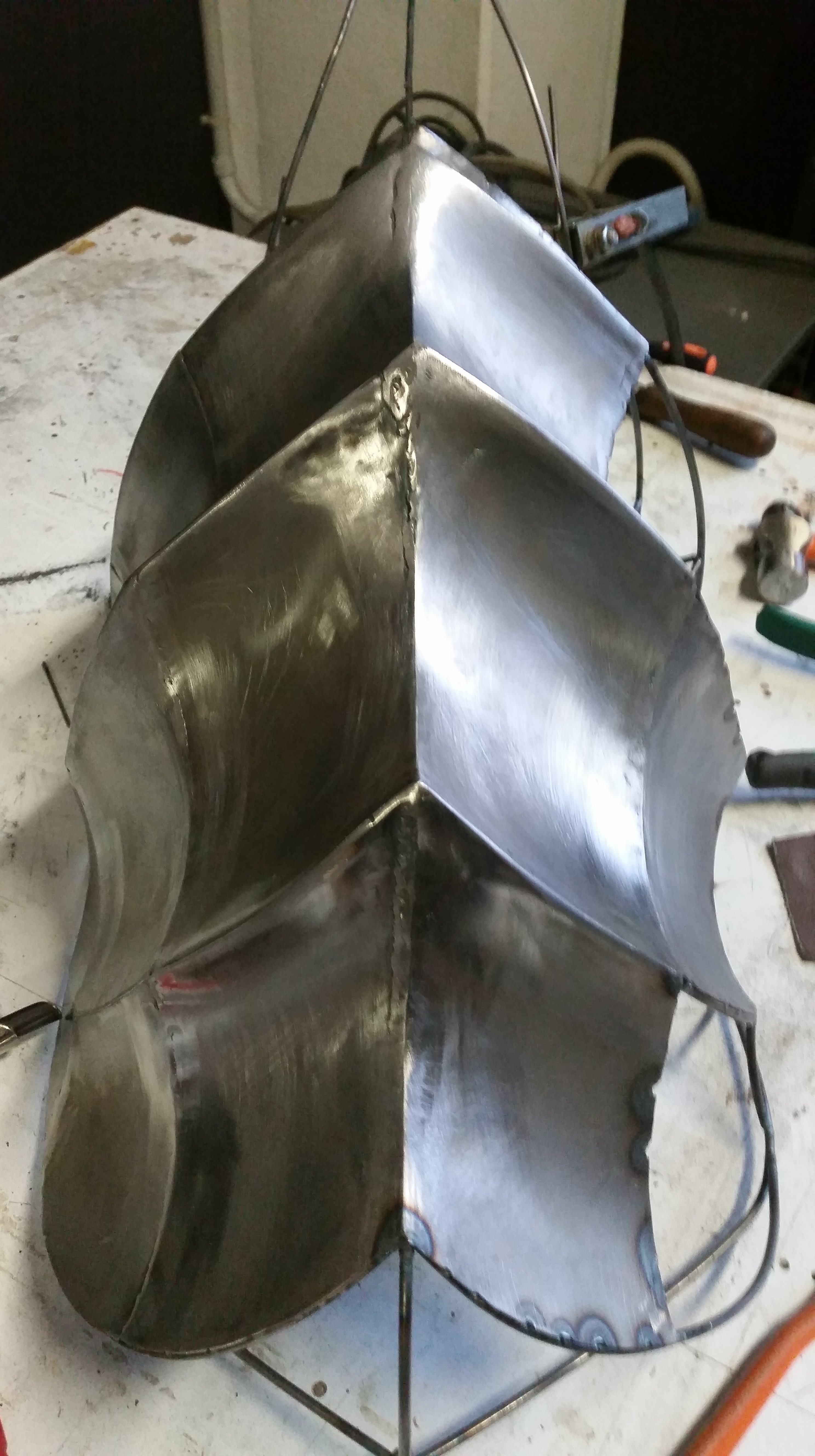 All components were soldered together via the TIG (Tungsten Inert Gas) procedure and the weld joints smoothed until disappearing so as to result in a single piece…